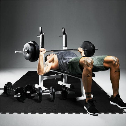 Set complet d'haltères 100 kg avec banc de musculation et tapis de protection du sol