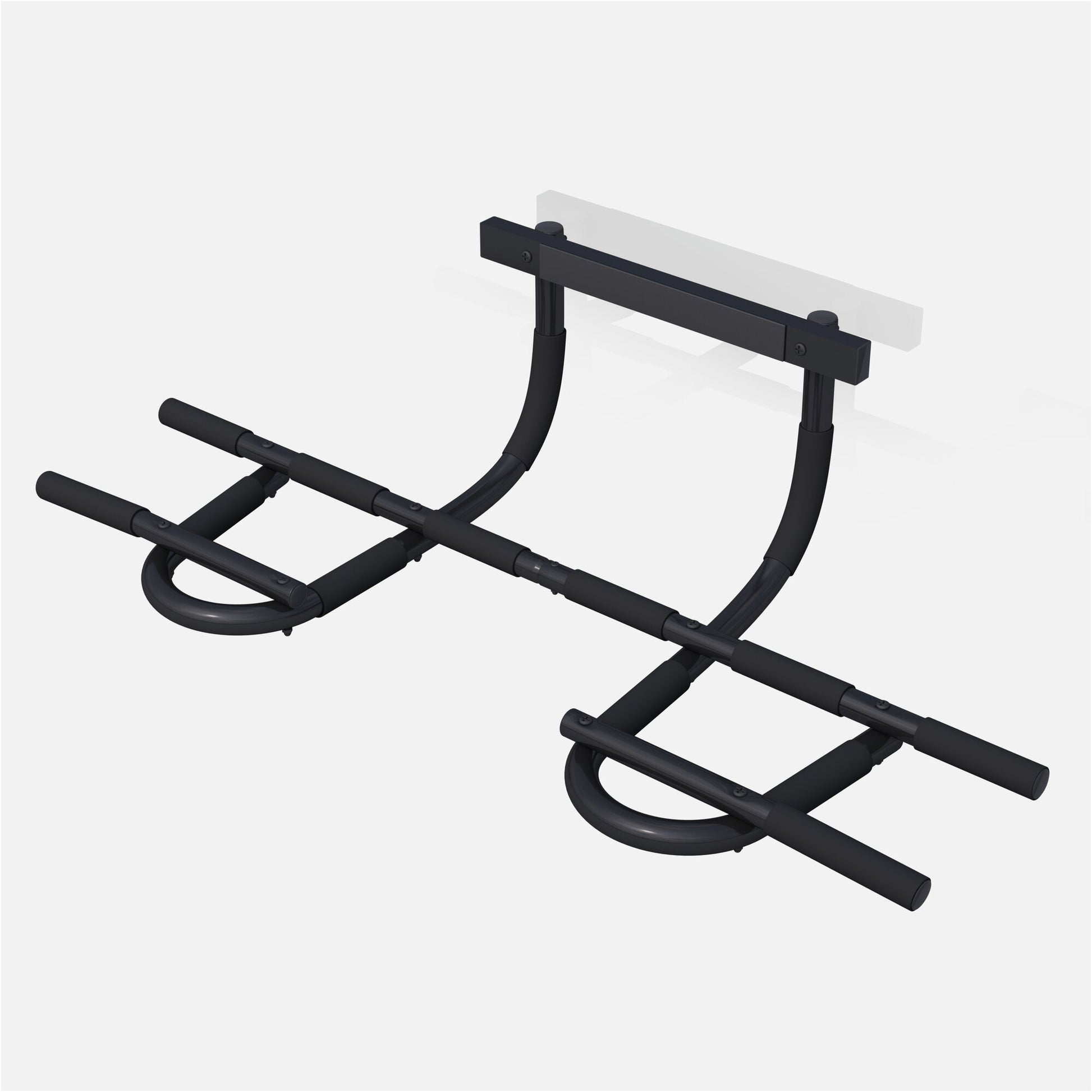 Pour les tractions : barre de traction multifonction en noir par Gorilla Sports