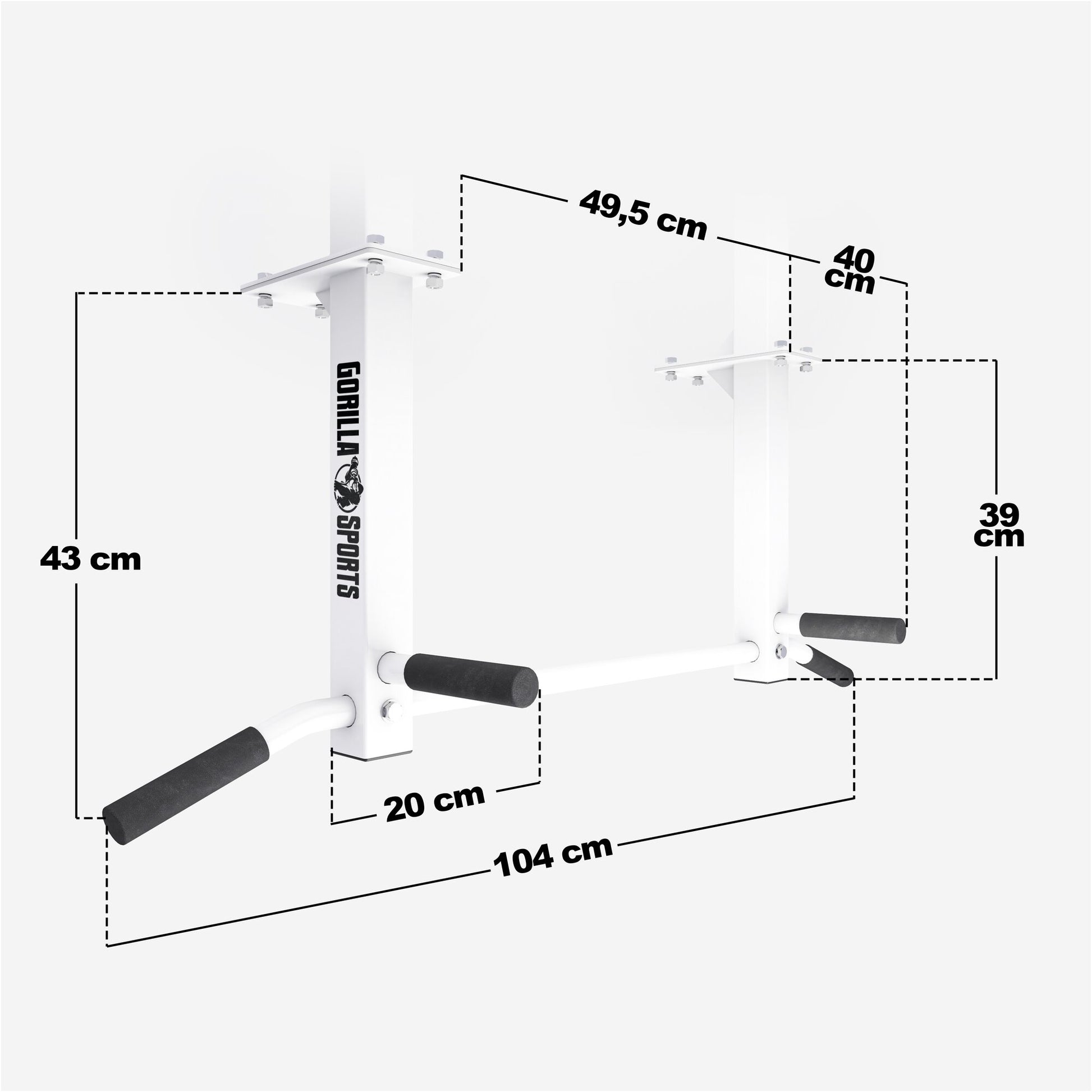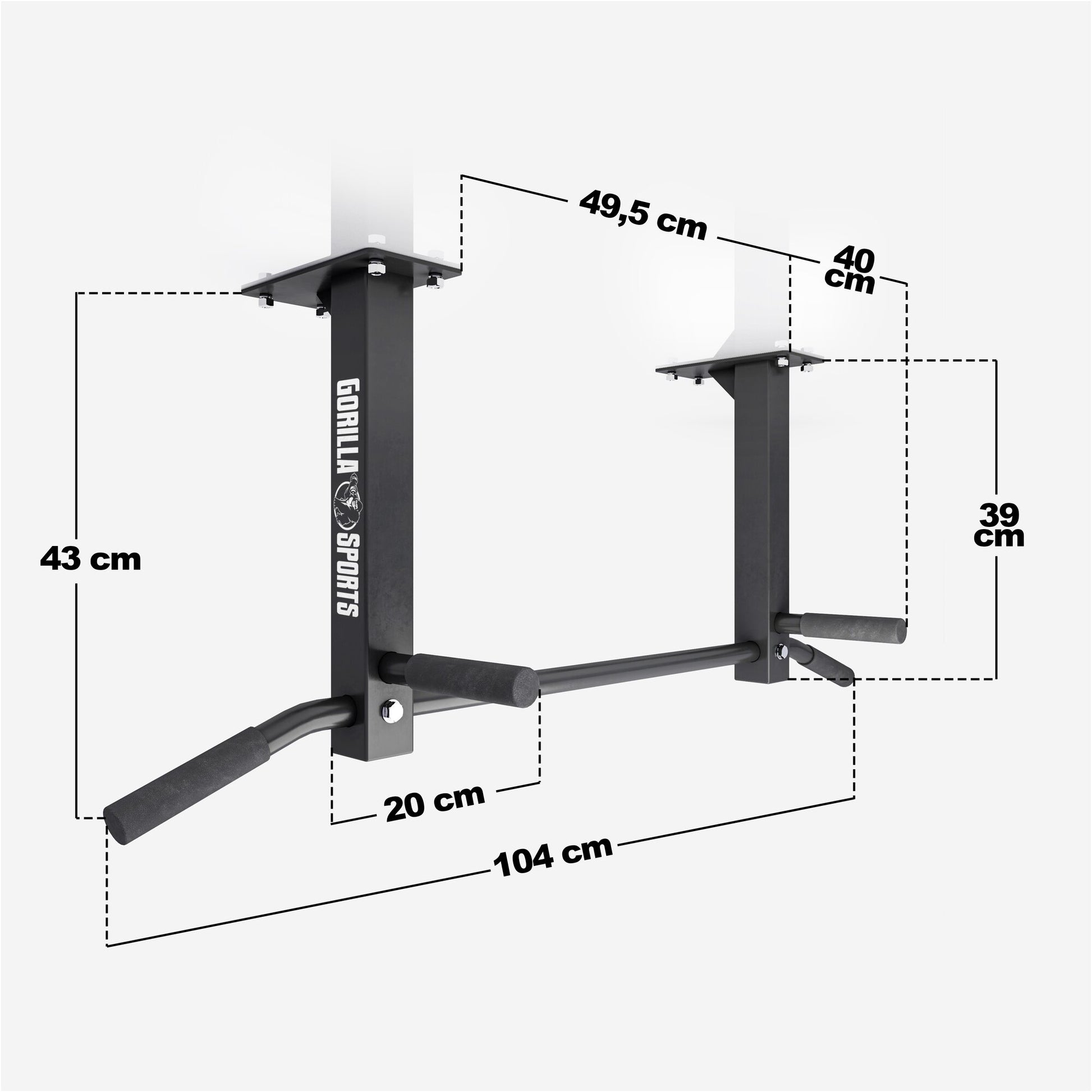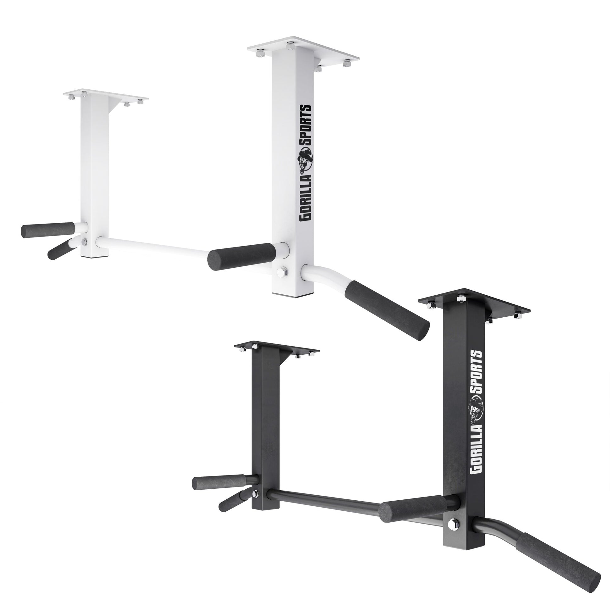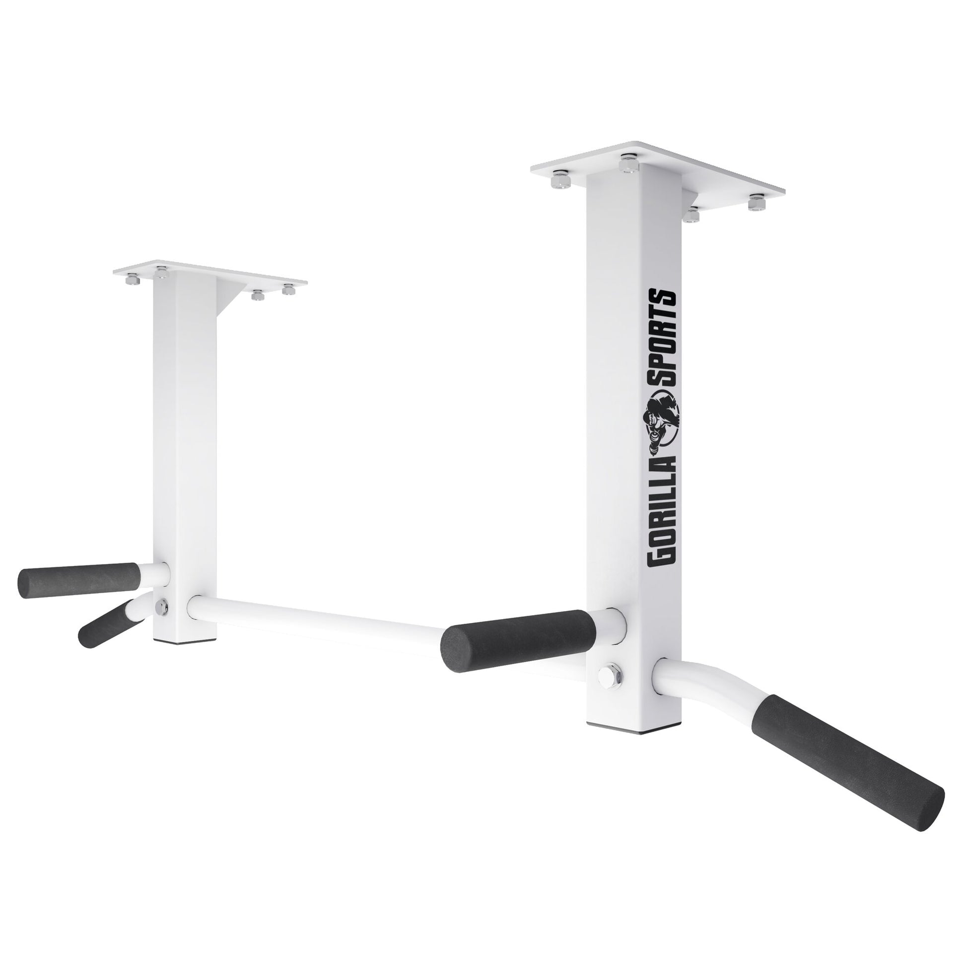La barre de traction pour plafond de Gorilla Sports vous permet, avec ses trois possibiltés de prise, un entraînement efficace pour le dos, les épaules et les bras.