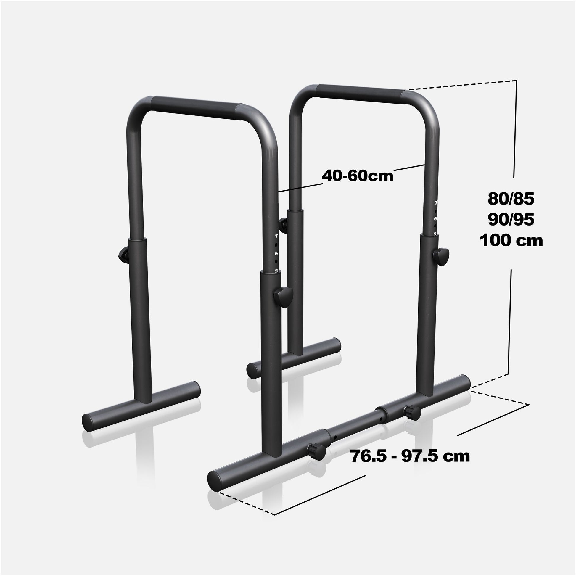 Avec les Barres parallèles GORILLA SPORTS®, donnez une nouvelle dimension à votre entraînement ! Grâce à leur hauteur et largeur ajustables (80-100 cm et 40-60 cm), elles s’adaptent parfaitement à vos besoins. Que ce soit pour des dips, L-sits ou tractions, leur structure robuste et leurs poignées antidérapantes vous assurent stabilité et confort. Parfaites pour renforcer vos bras, épaules et pectoraux !