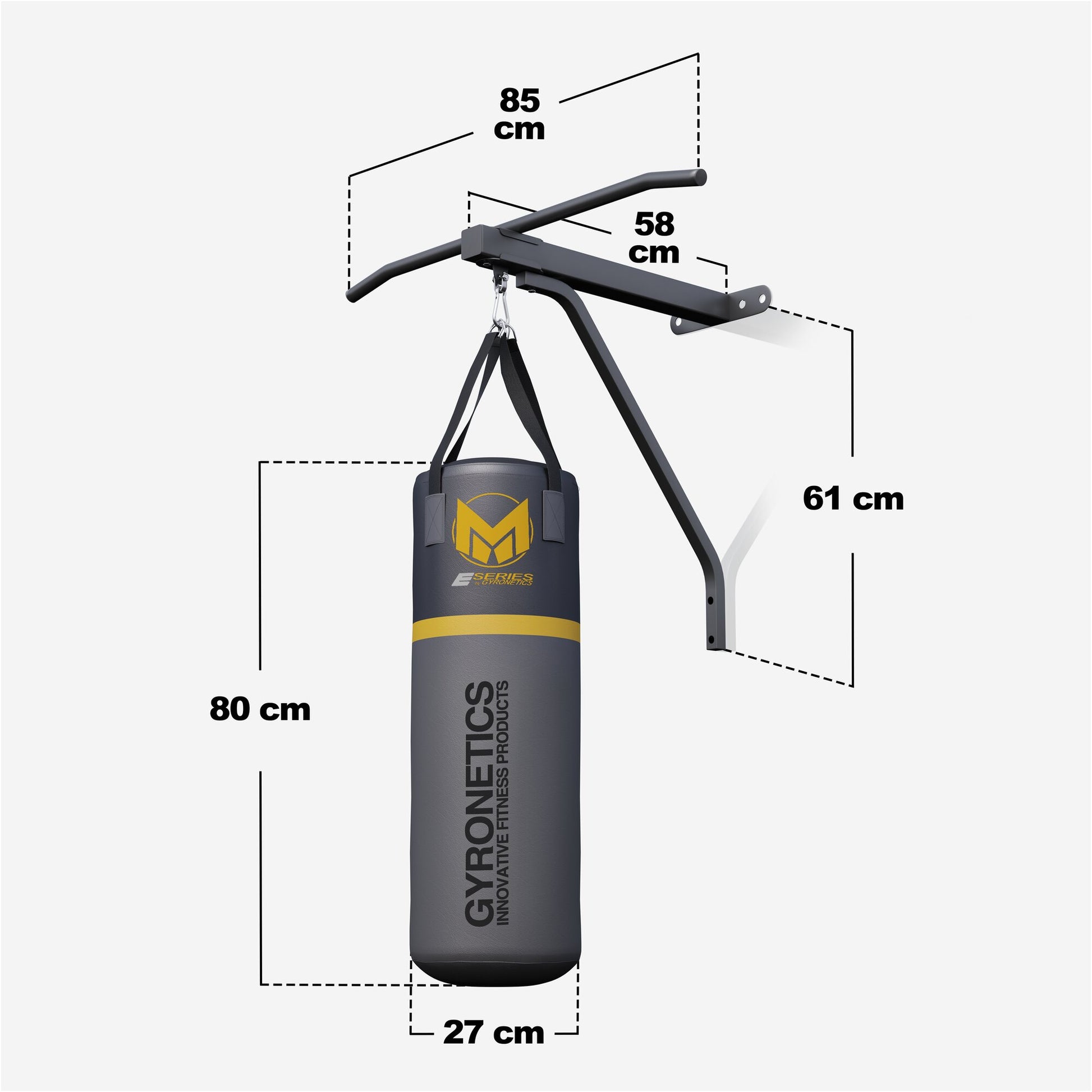 Démarrez et renforcez la force de vos biceps avec le sac de boxe 2-en-1 : le sac de boxe E-Series avec barre de traction vous permet de faire des tractions pendant l'entraînement de boxe. La barre de traction de 85 cm de large doit être simplement montée au plafond. Le sac de boxe de qualité supérieure en EPE (plastique) est suspendu au support de la barre de traction. Cette combinaison pratique de deux équipements sportifs est facile à monter et peu encombrante.