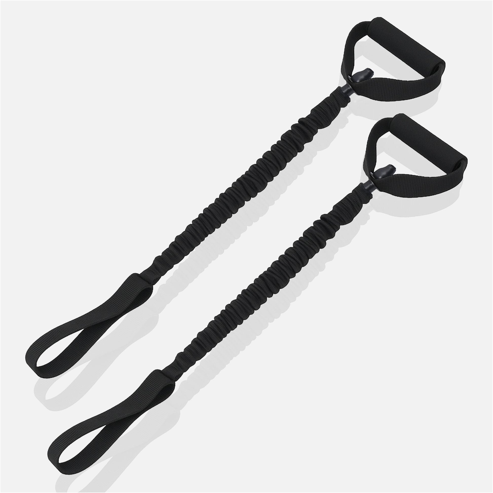 - Set tout-en-un avec rouleau, tapis de genoux, poignées de pompes et bandes de résistance
