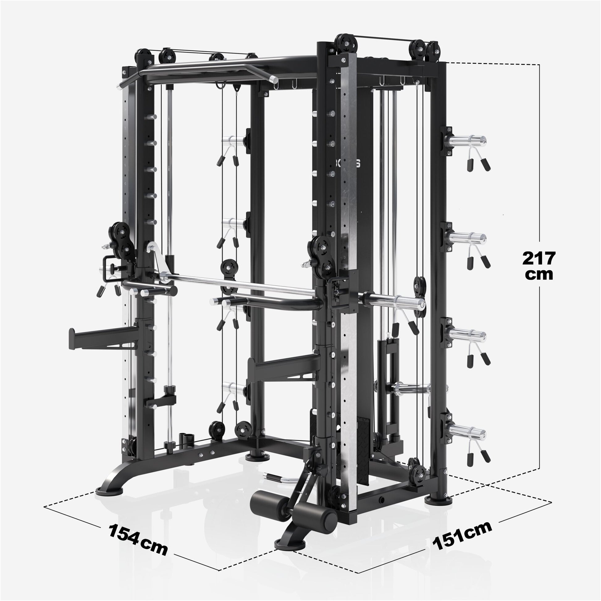 Les Smith machines multipresses et les appareils de musculation ont généralement un grand inconvénient. En raison de la nécessité d'une conception compacte, l'ergonomie est souvent négligée. Les exercices ne peuvent pas être effectués correctement lorsqu'il n'y a pas assez de place. Avec la Smith machine Multipresse 10.1, la principale priorité n'était pas de tenir compte des conditions de place dans la pièce, mais de la possibilité de vous entraîner de la façon la plus efficace et ergonomique possible.