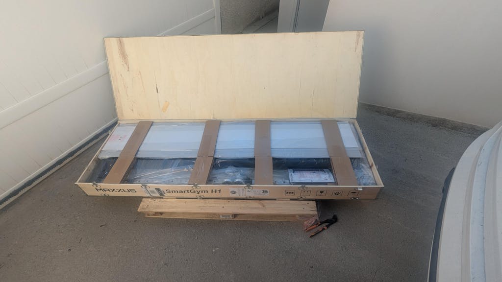 La station SmartGym H1 est livrée presque entièrement préassemblée. Seuls les panneaux arrière et avant doivent être vissés (Les vis et les chevilles pour le montage mural ne sont pas incluses).En fonction de l'état du mur, le matériel de fixation doit être choisi en conséquence, en consultation avec un spécialiste (par exemple dans une quincaillerie ou un magasin de bricolage).