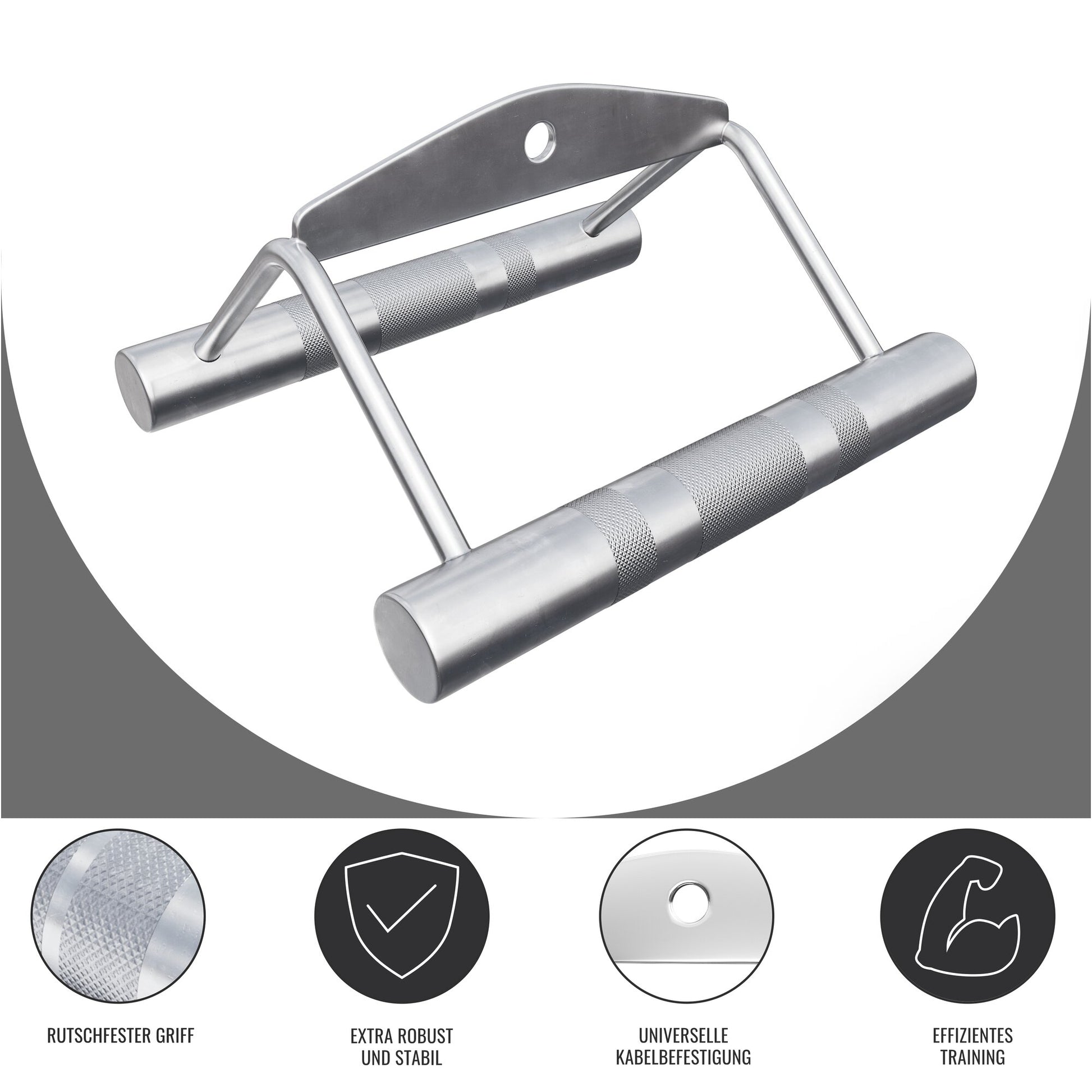 La poignée d'aviron est fabriquée en chrome de haute qualité, en qualité studio pour votre home fitness Les poignées moletées ont pour but de vous permettre de garder un contrôle total sur la prise à tout moment pour une meilleure prise, même avec les mains moites, afin d'éviter tout glissement.
