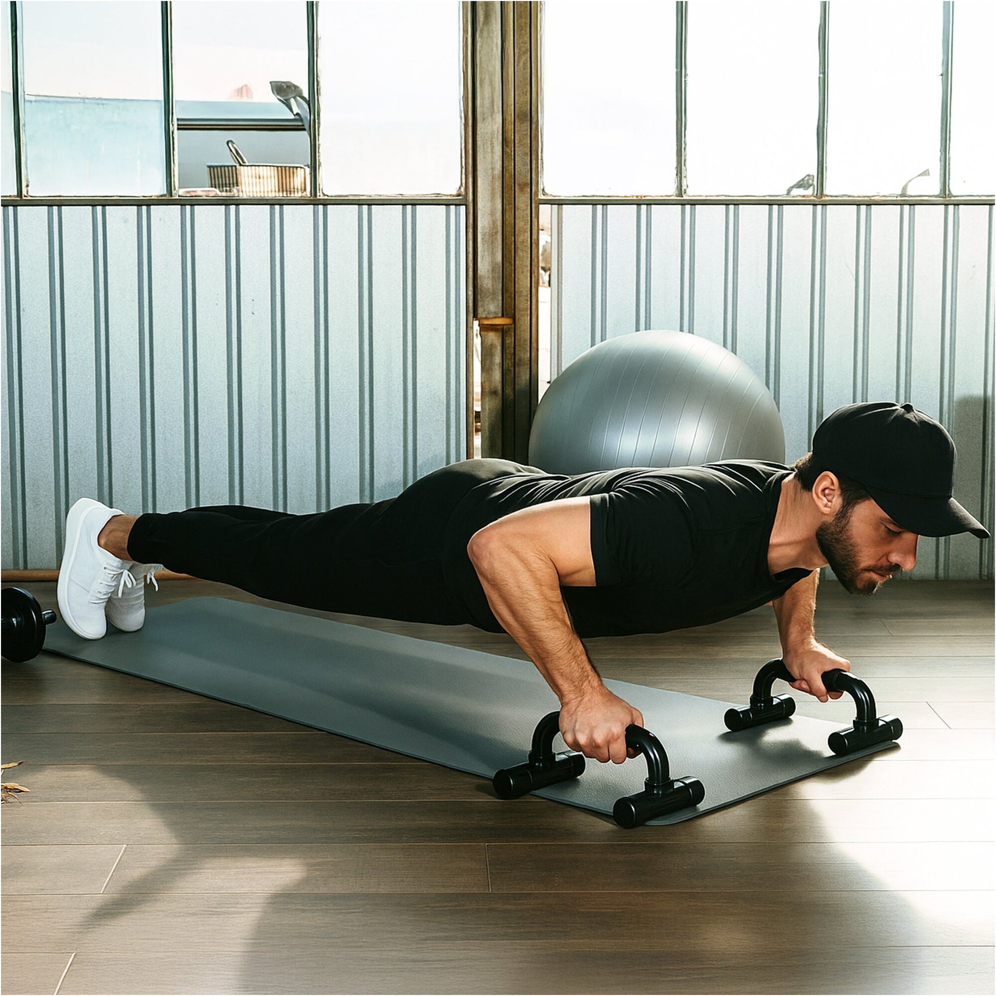 - Comprend des tapis pour les genoux, des poignées de pompes et des bandes de résistance
