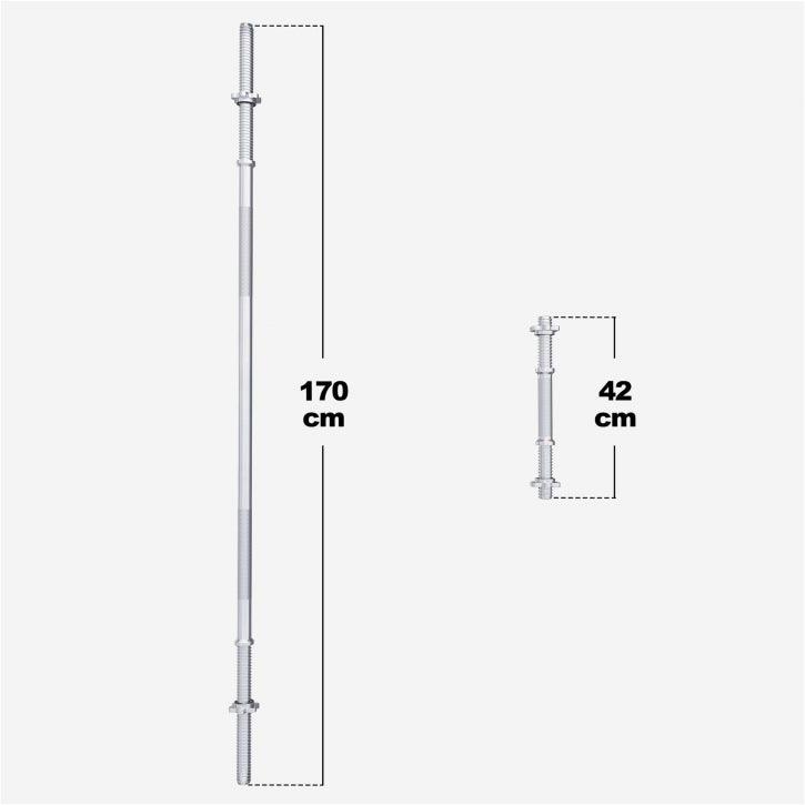 • 1 barre d'haltère longue de 10 kg et 170 cm de long, surface de réception de 31,1 cm de chaque côté