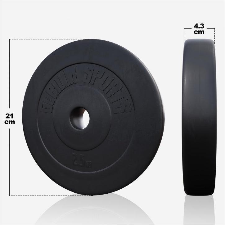• 4 disques de 2,5 kg, diamètre 21 cm, largeur 4,3 cm
