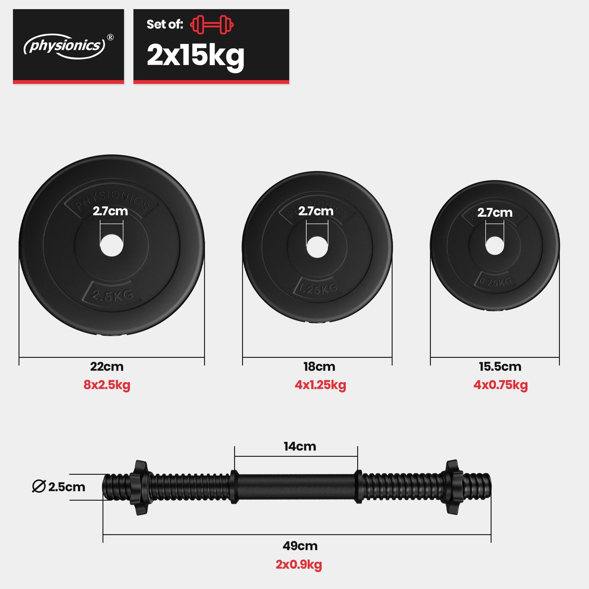 Les disques sont revêtus de plastique pour protéger les sols, ce qui rend ce set parfaitement adapté aux home-gyms, salons ou pièces à vivre.